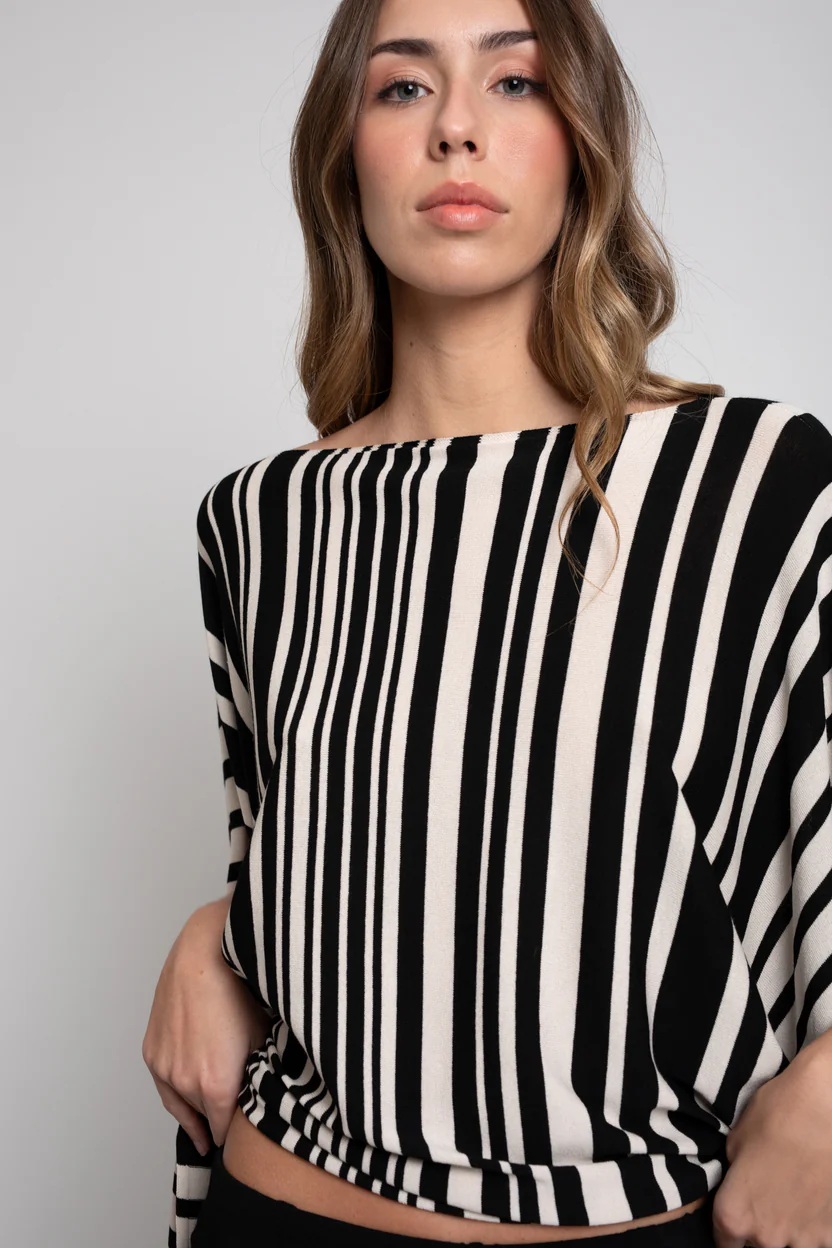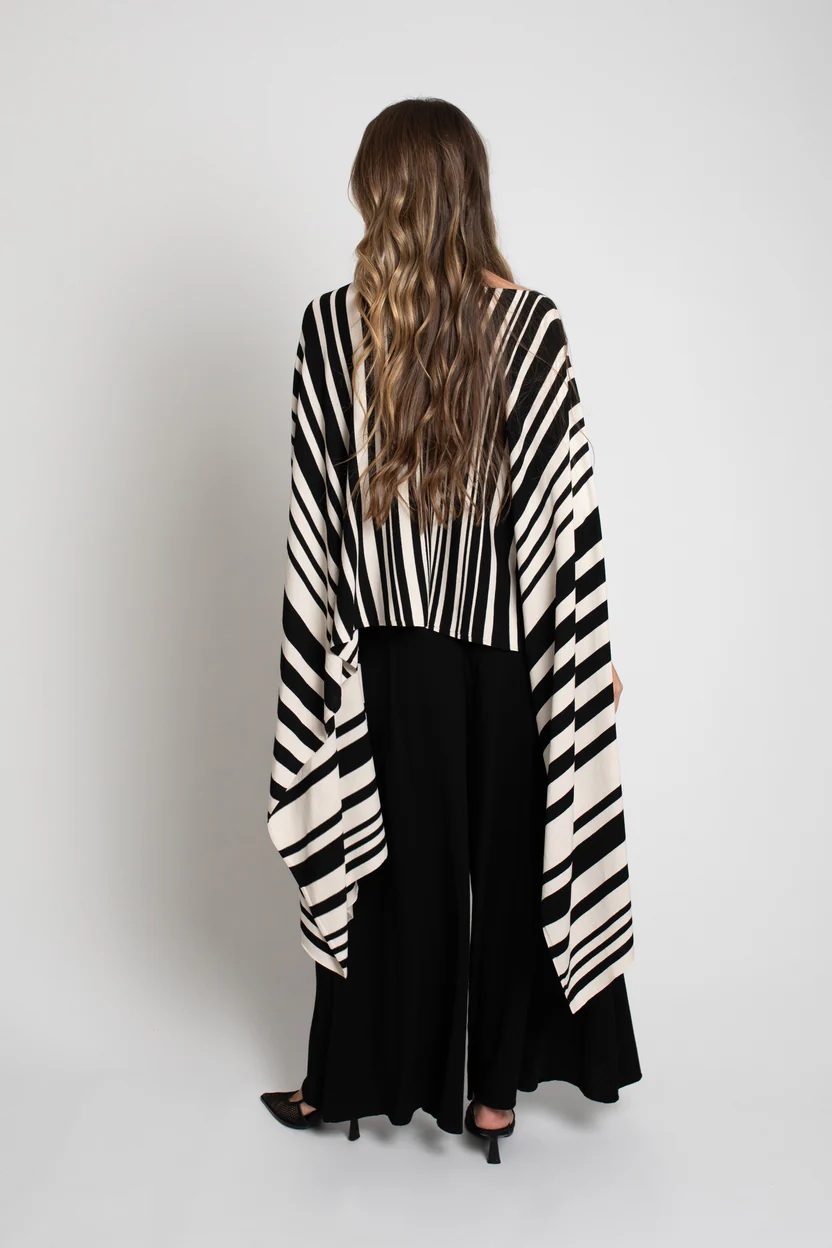 Jersey tipo capa confeccionado en punto tricot de viscosa elástica, diseñado para aportar ligereza, movimiento y comodidad. Su silueta fluida y envolvente lo convierte en una prenda versátil, ideal tanto para looks casuales como para estilismos más sofisticados.