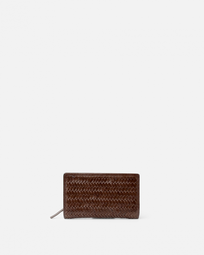 Billetero de piel vacuna lavada y trenzada. Cierre con boton. Compartimiento para billetes, tarjetas y monedas. Sistema de seguridad RFID.