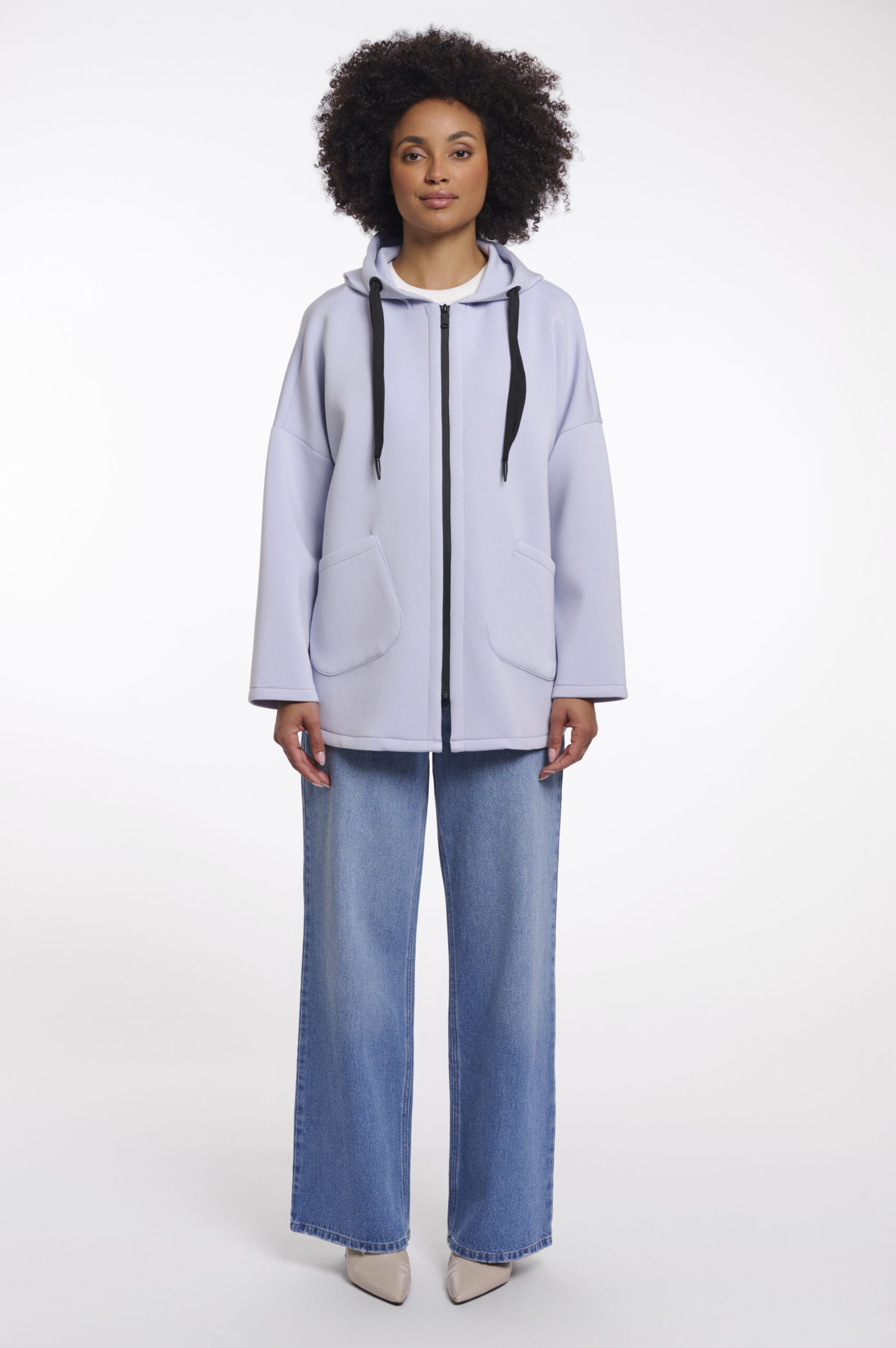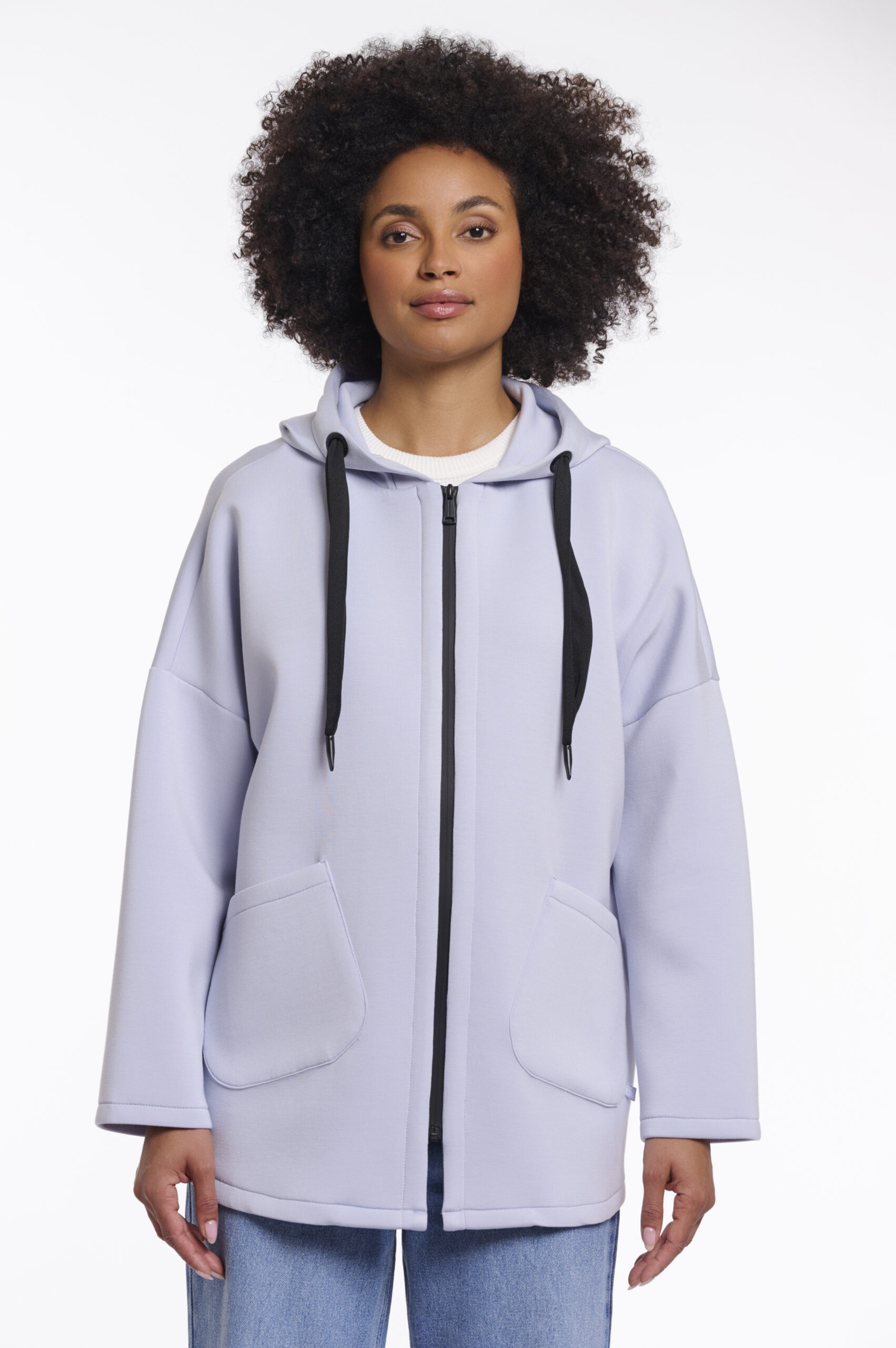 Envuélvete en sofisticación sin esfuerzo con este abrigo de longitud media, elaborado con un tejido excepcionalmente suave y flexible para una comodidad máxima. Diseñado con un cierre de cremallera elegante, bolsillos delanteros en ángulo y una capucha con cordones grandes, combina la comodidad casual con detalles refinados. El dobladillo redondeado añade un toque moderno, convirtiéndolo en la capa perfecta para un estilo diario pulido.