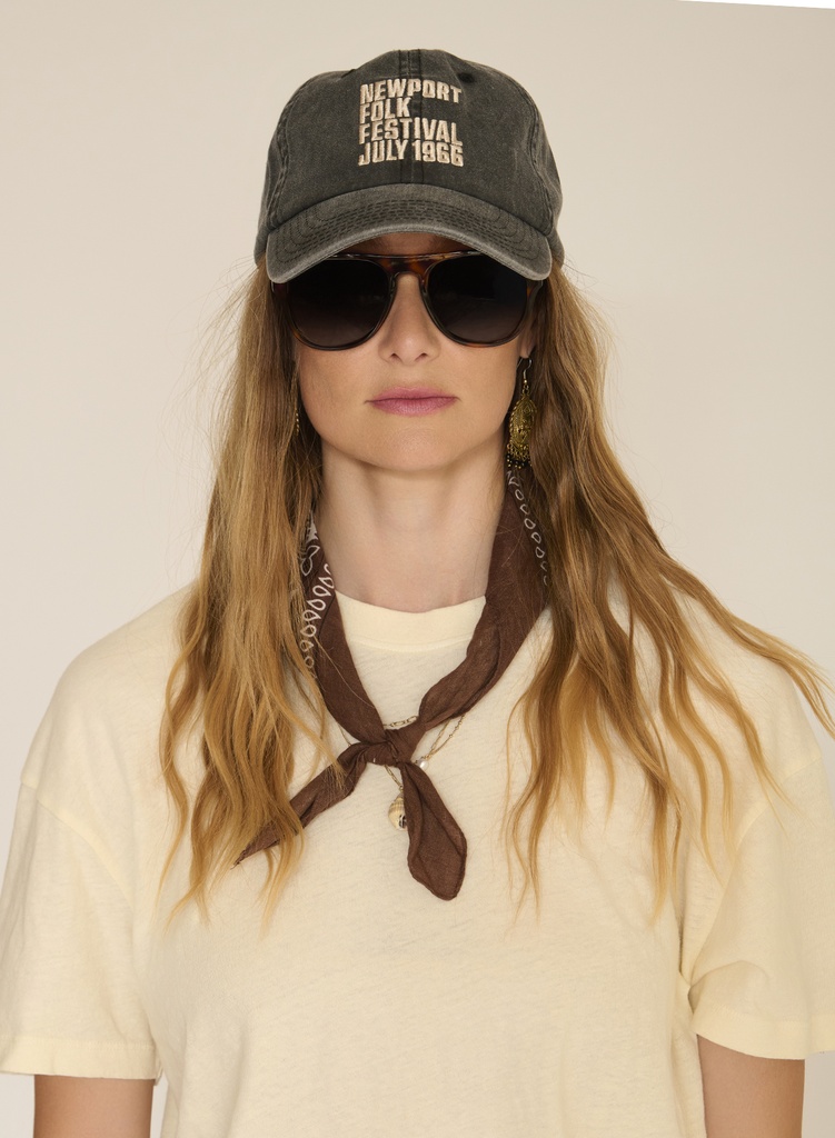 Esta gorra gris descolorida evoca un audaz espíritu vintage con su mensaje bordado que recuerda a un recuerdo de festival. La tela ligeramente desgastada y la visera curva le dan un aspecto auténtico que es fácil de combinar todos los días. Perfecta con una camiseta de colores claros y jeans para un look casual, o para añadir un toque fresco a un conjunto más femenino.