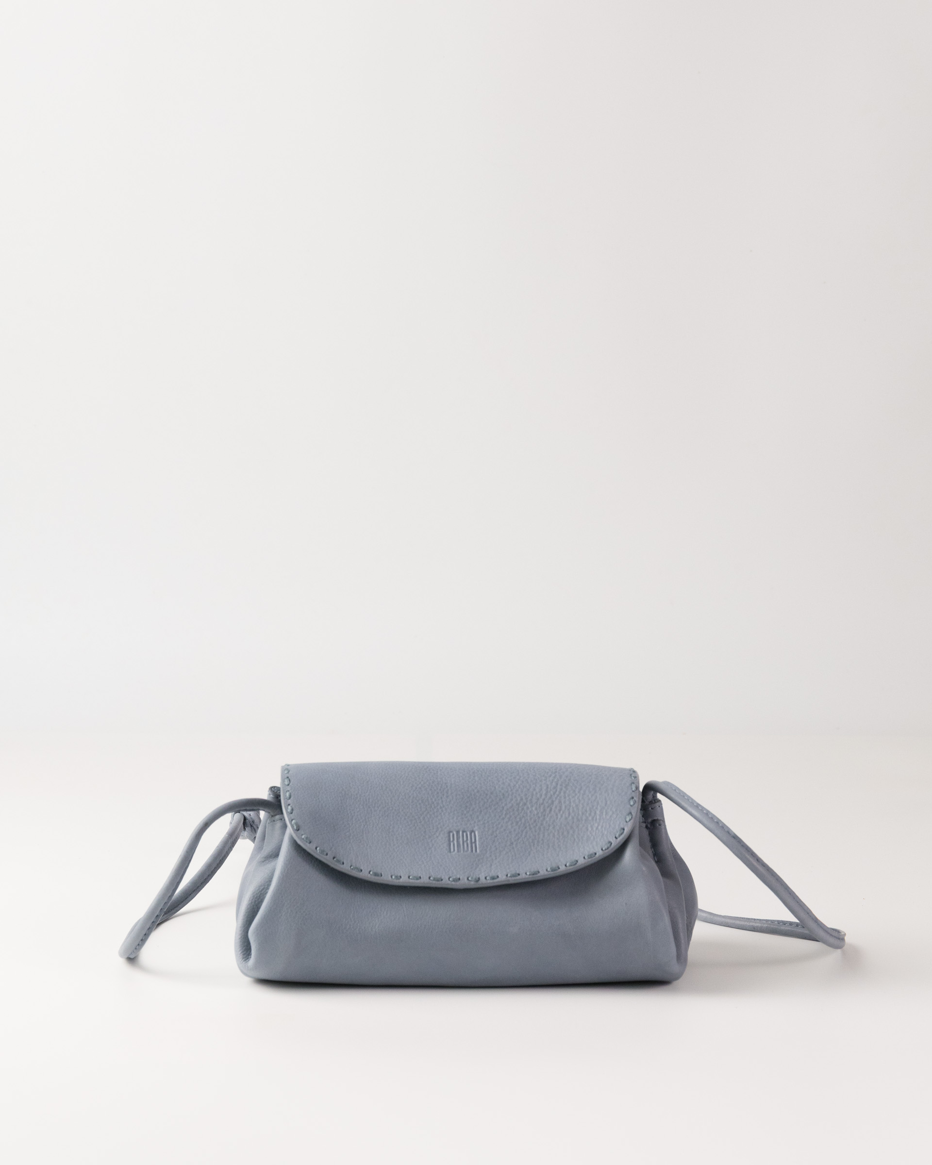 Bolso bandolera de piel vacuna lavada. Cierre con solapa y botón. Tres compartimientos, de los cuales uno cierra con cremallera.