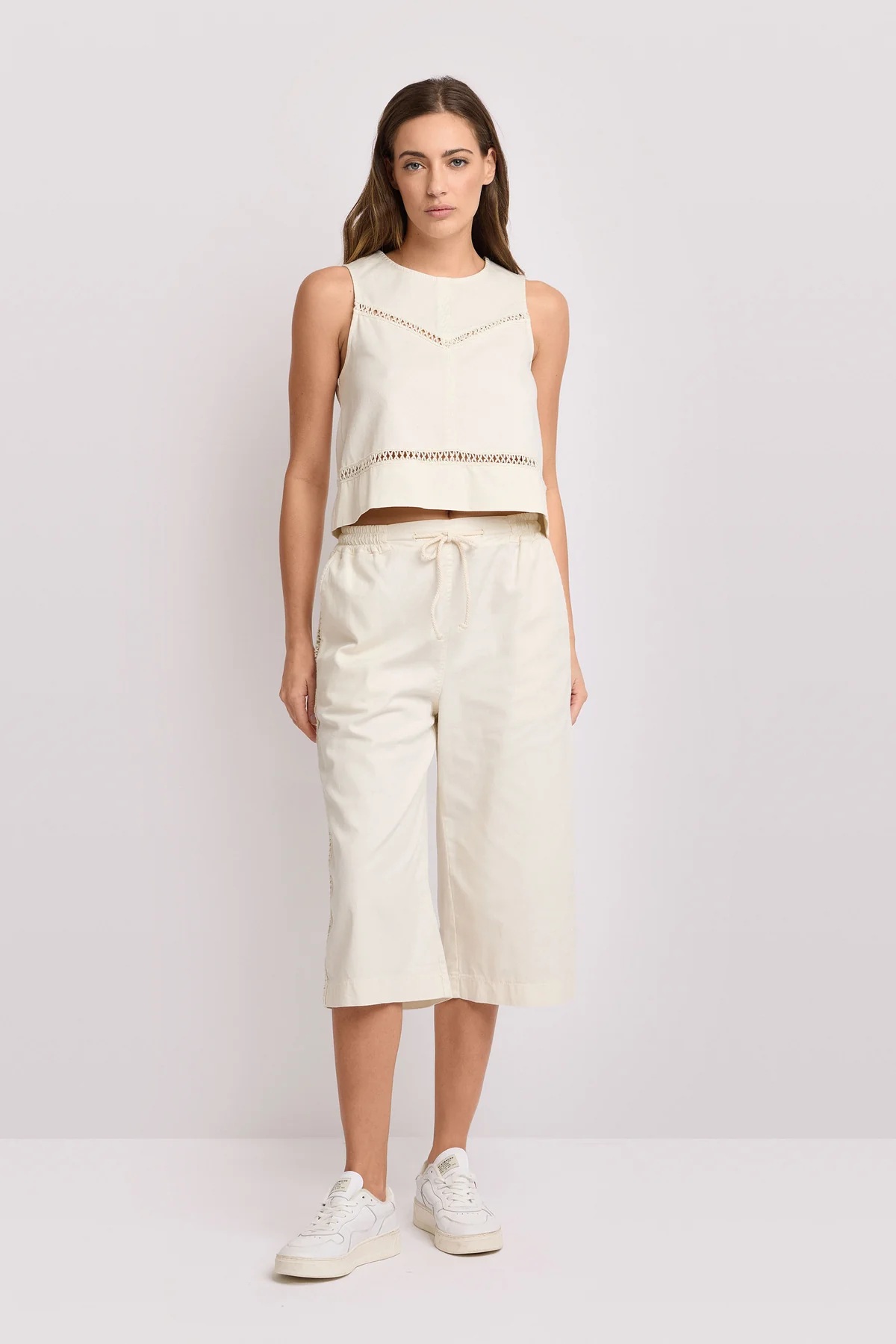 Diseño sin mangas con inserciones caladas